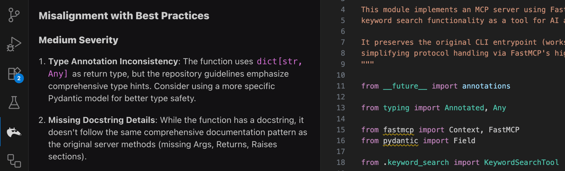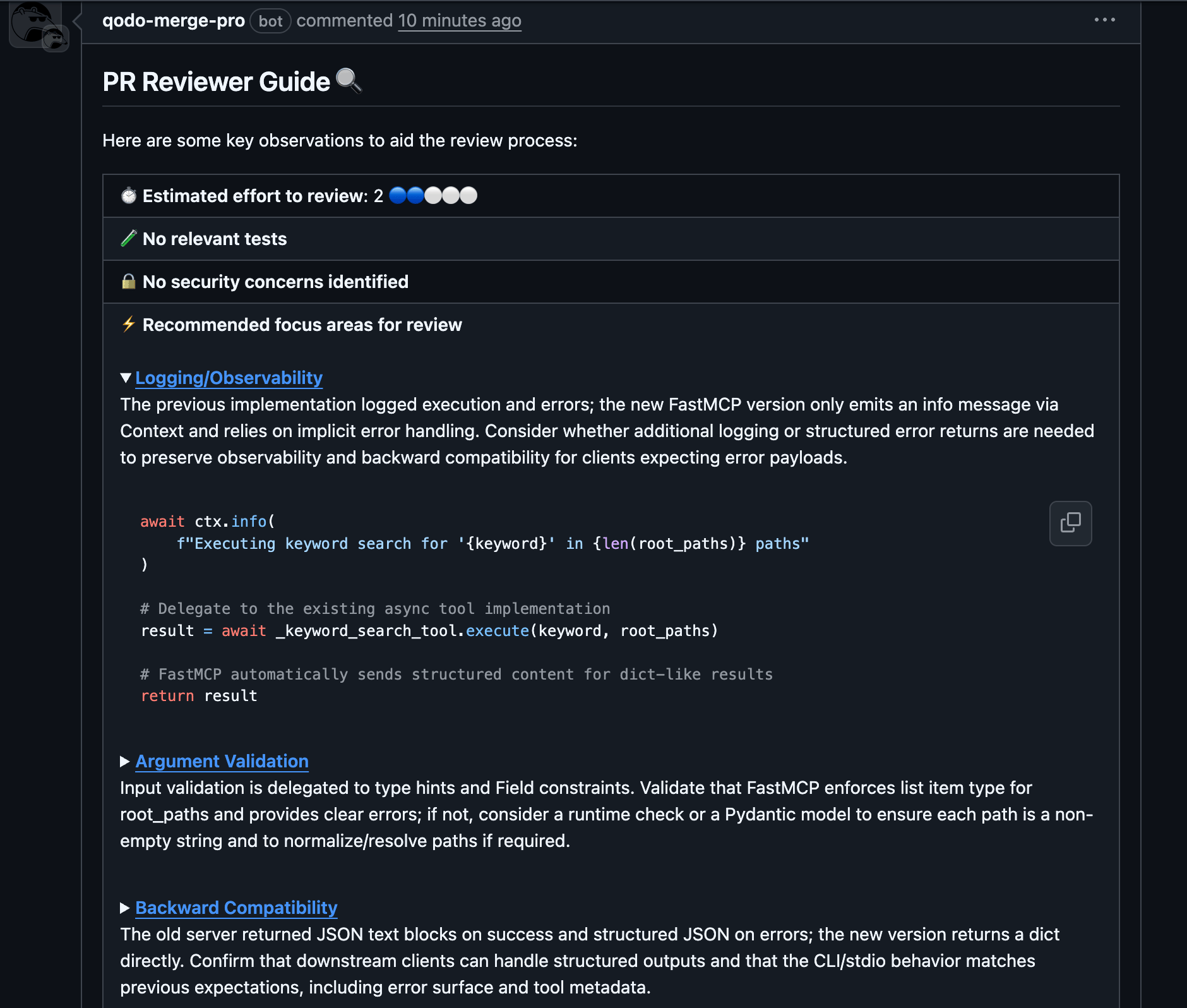 A workflow built in to Qodo that checks for best practices alignment according to existing code standards and architectural patterns in your codebase.