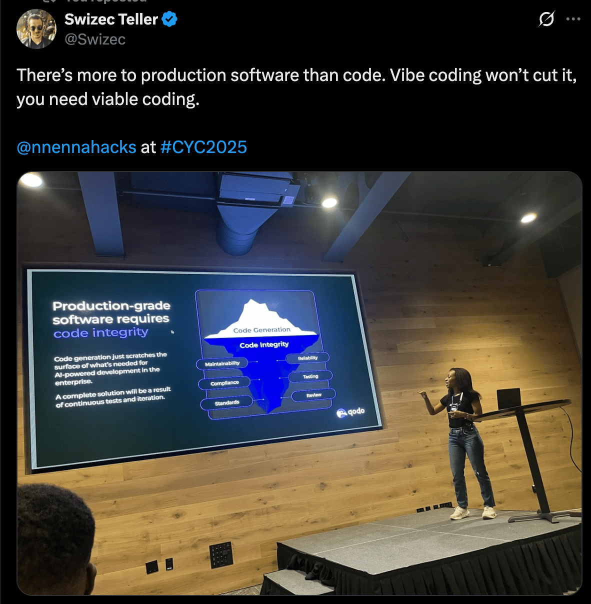 An engineering manager at Qodo used this term in an internal meeting and I immediately latched on to it. Since then, I’ve taken it on the road and began battle-testing this phrase as a direct antithesis to vibe coding for software engineers.