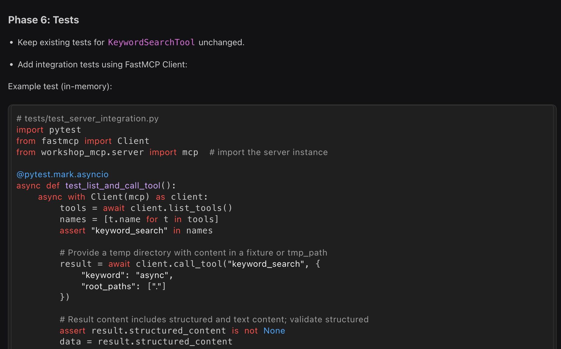 During testing: Comprehensive test suite generation that understands your existing patterns and edge cases, not just generic testing approaches.