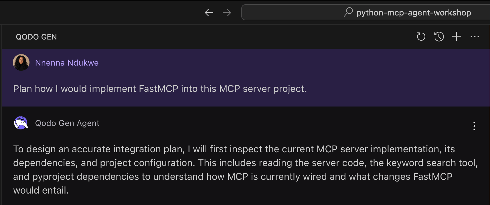 Chatting with a Plan Agent in my code editor