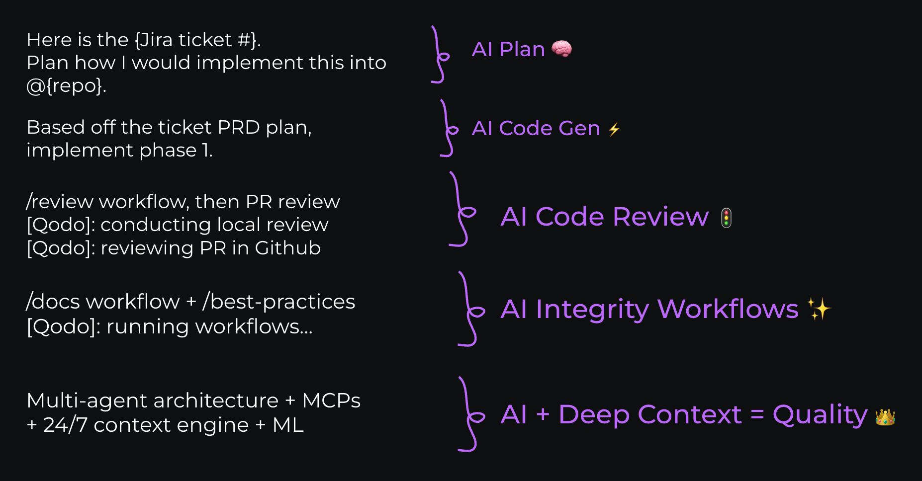 Before writing code: AI agents analyze architectural impact across multiple repositories, suggest optimal implementation approaches, and identify potential integration challenges.